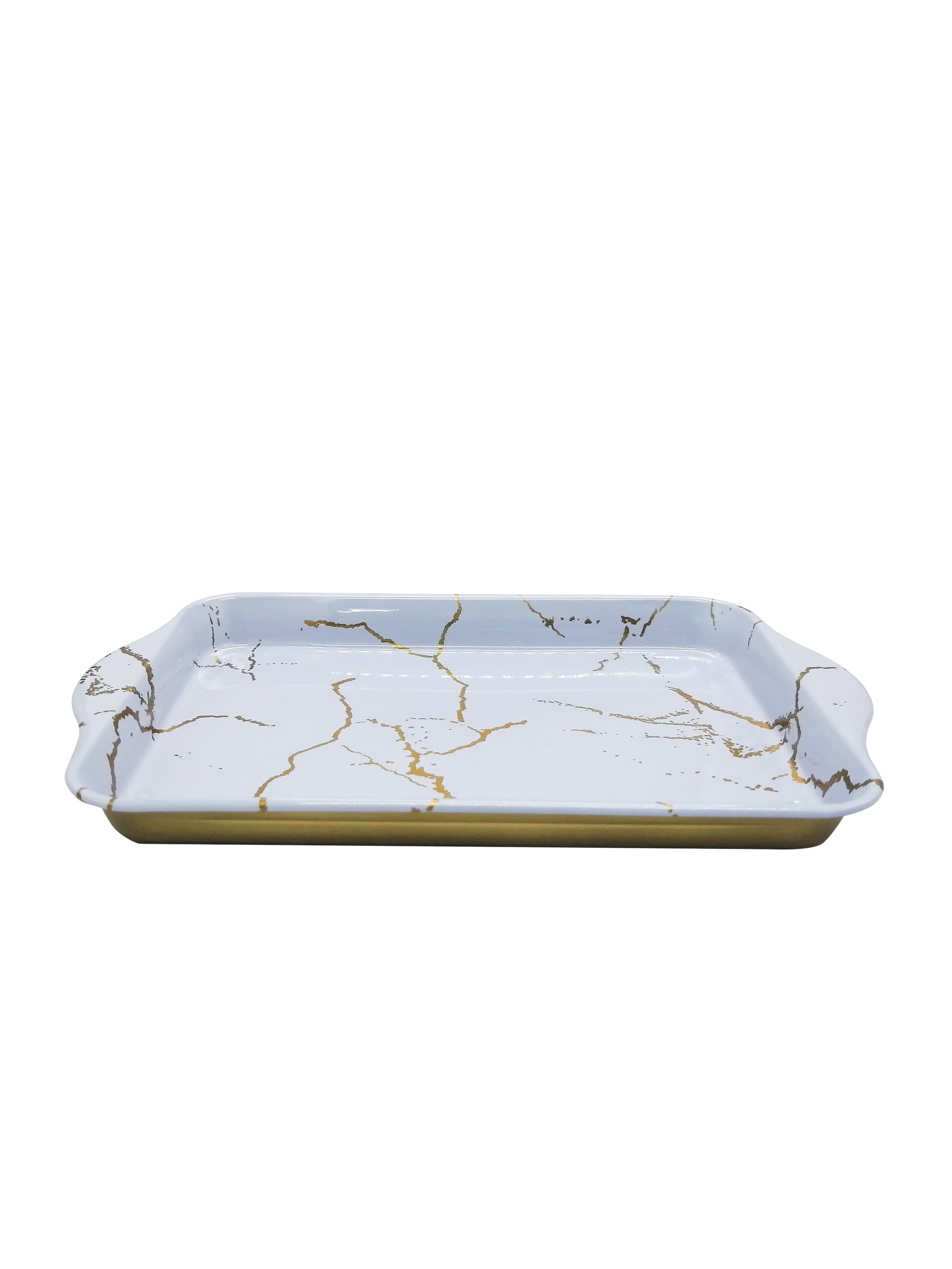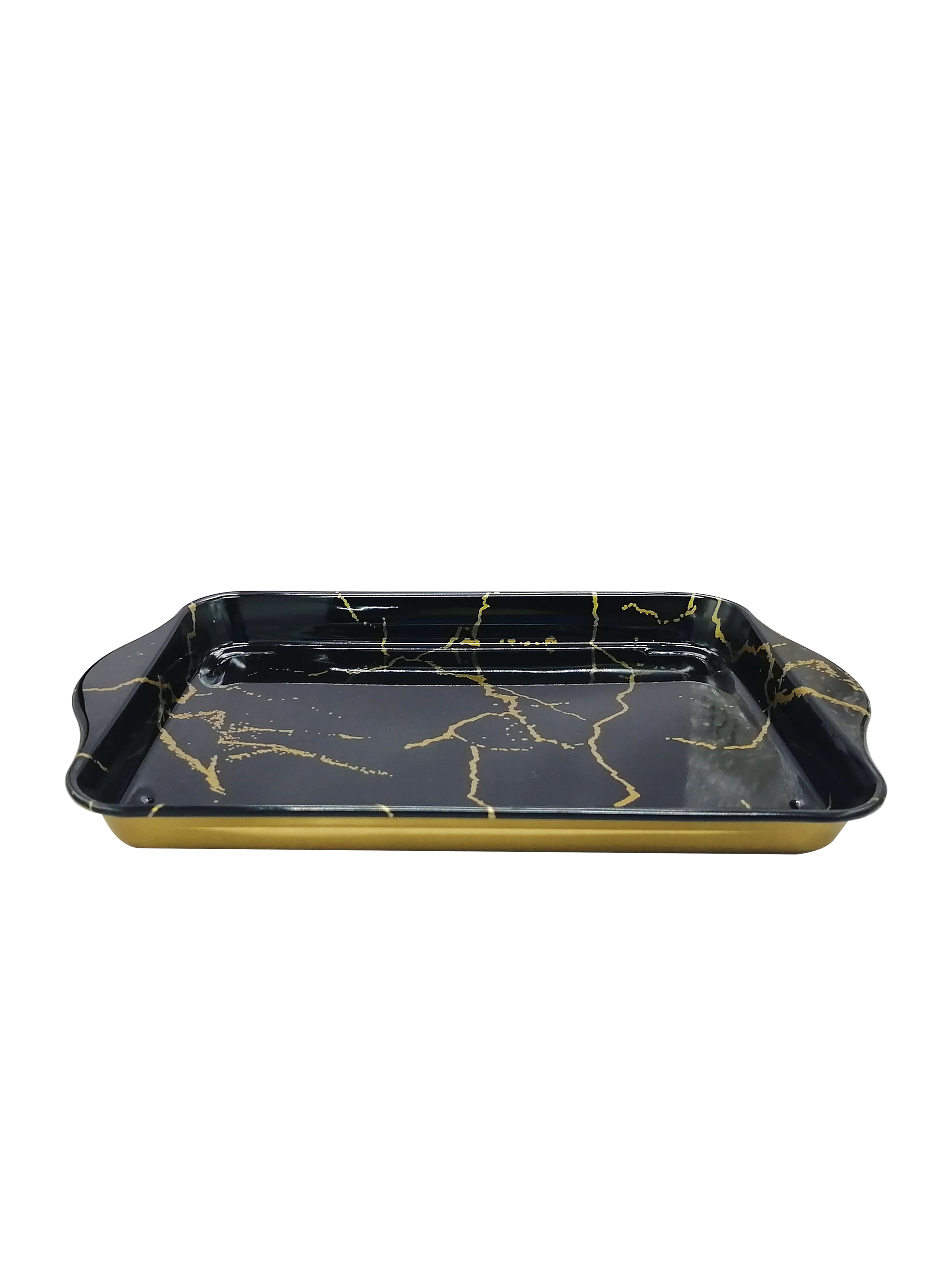 Bandejas Metálicas Decorativas Estilo Mármol – Blanca y Negra con Vetas Doradas