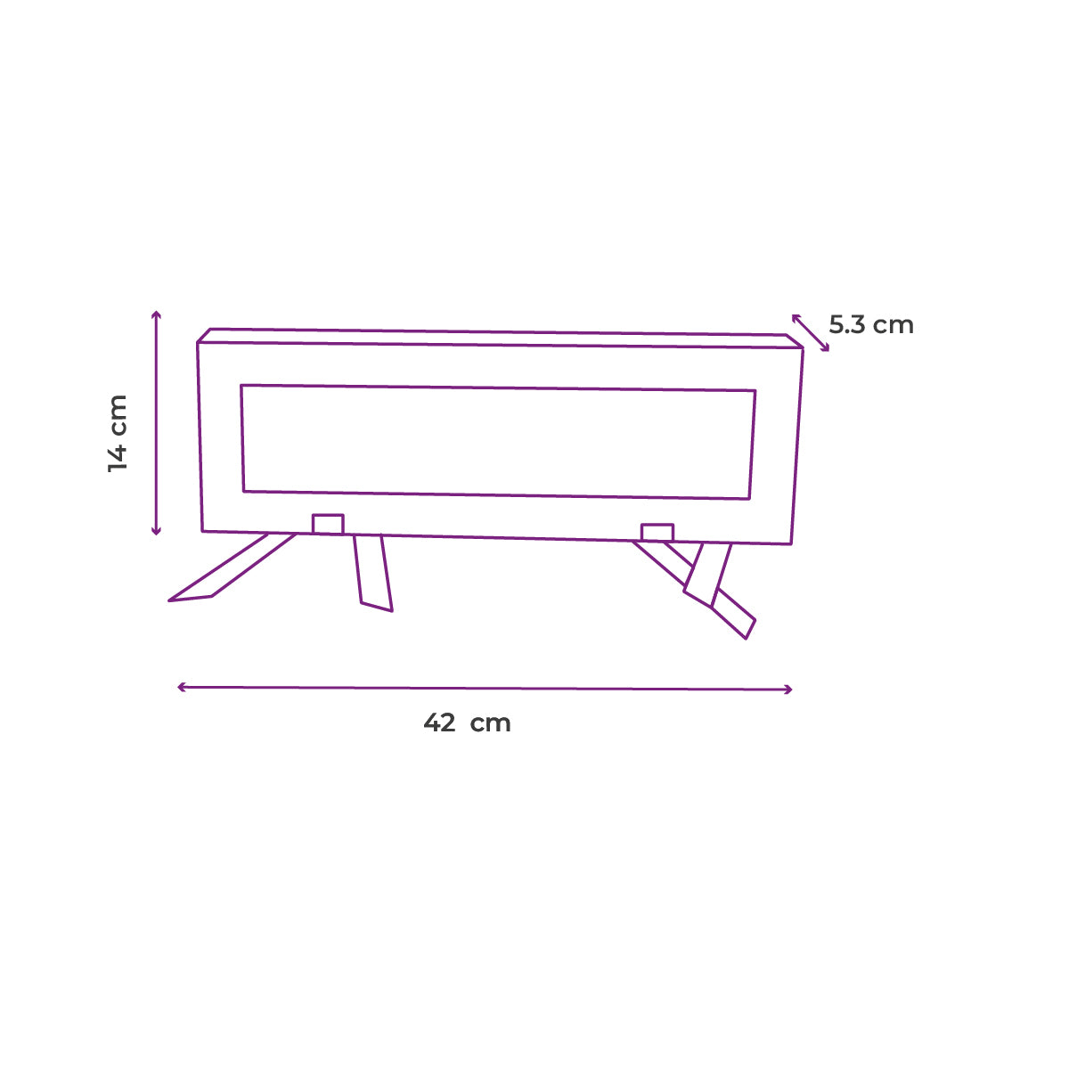 Medidas: 42 cm base x 14 cm profundidad x 5.3 cm altura
