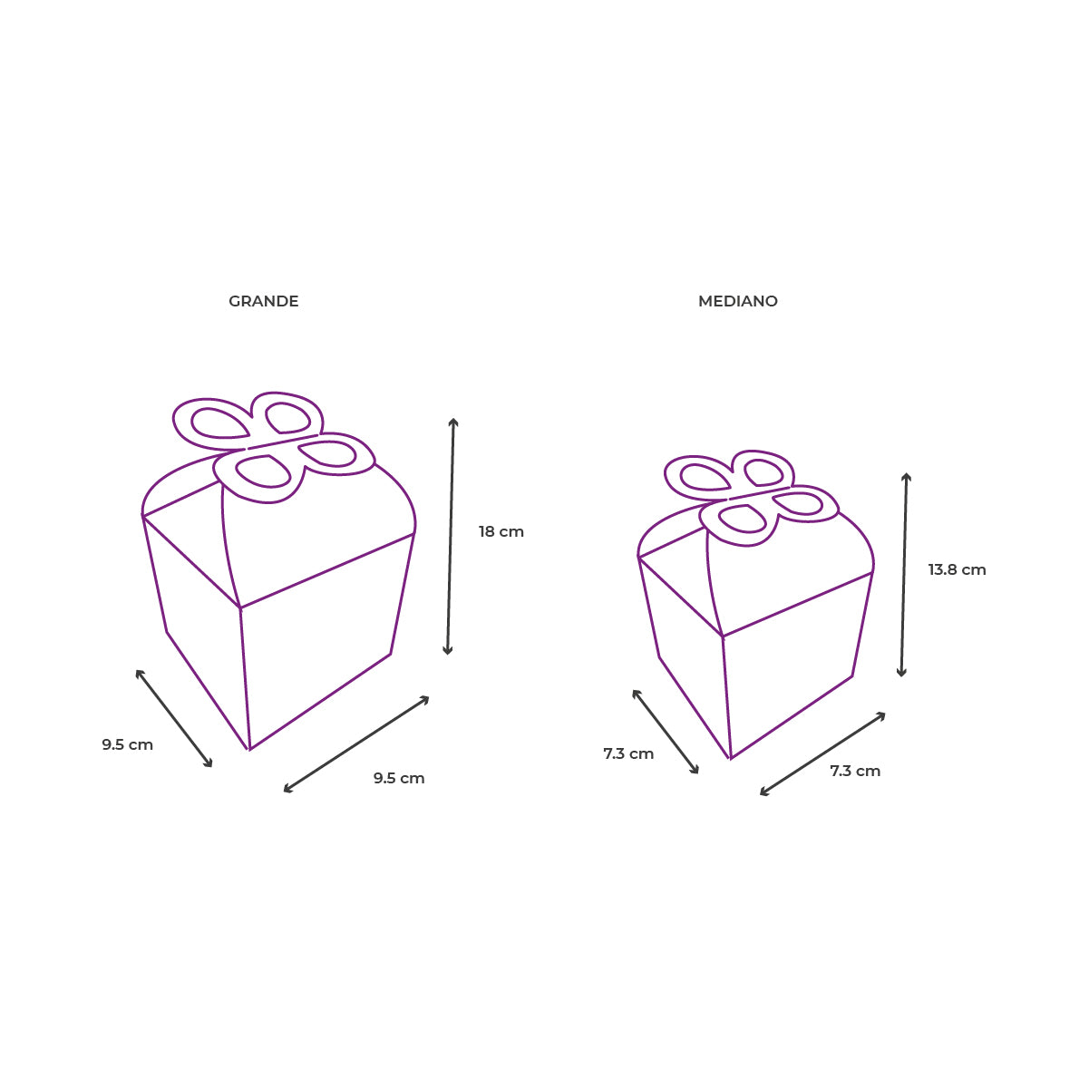 Grande: 18 cm altura x 9.5 cm base x 9.5 cm profundidad