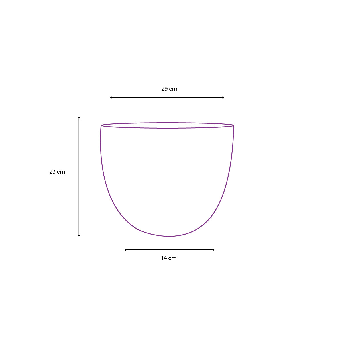Medidas: base 14 cm x boca 29 cm x altura 23 cm