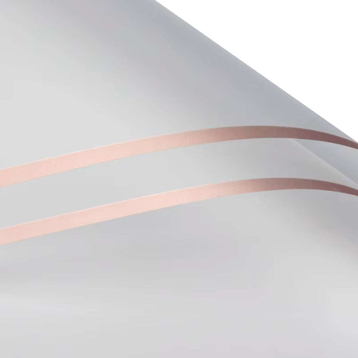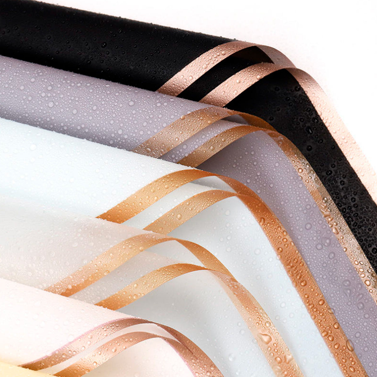Paquete de 20 pliegos para ramos y arreglos florales. Este hermoso papel translúcido con color y franjas doradas disponibles en 6 diseños diferentes.