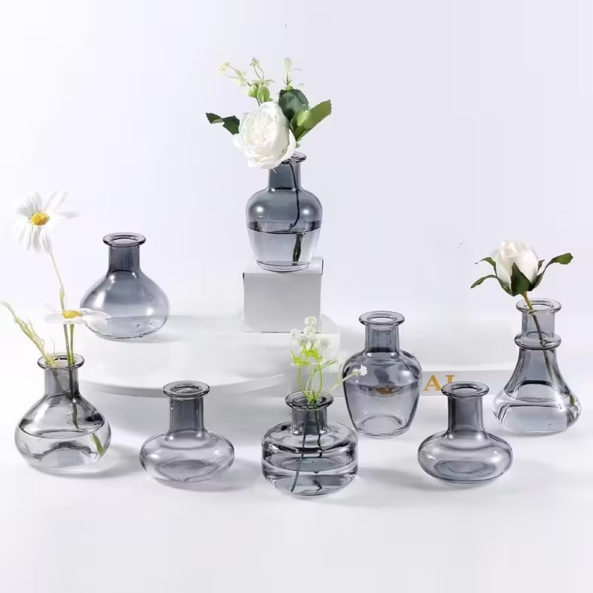Set de Jarrones de Vidrio Pequeños Transparente – Mini Jarrones Decorativos para Flores