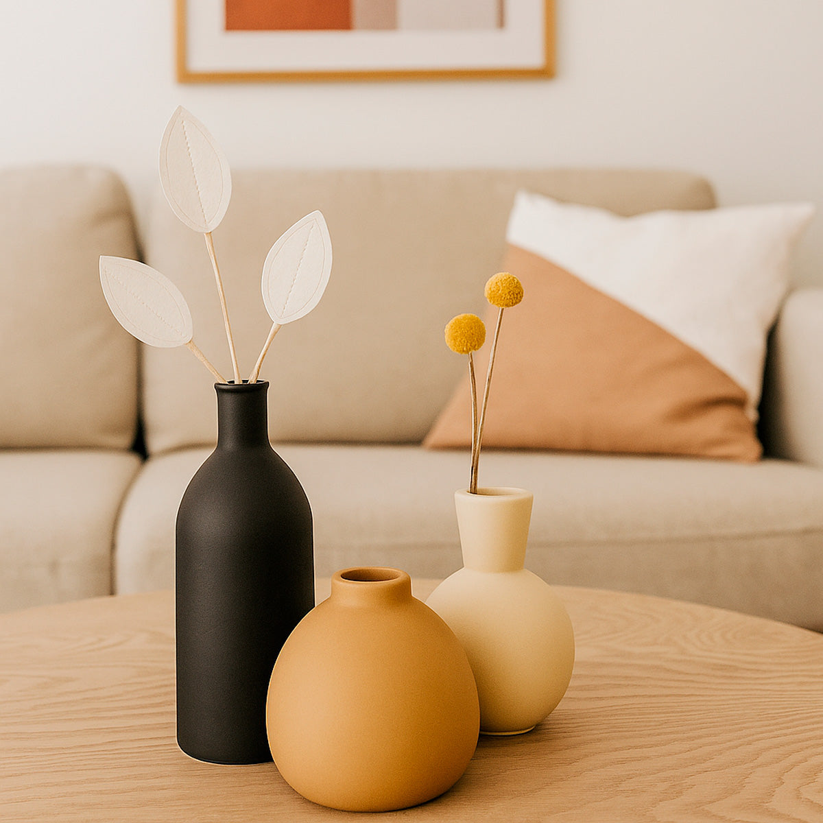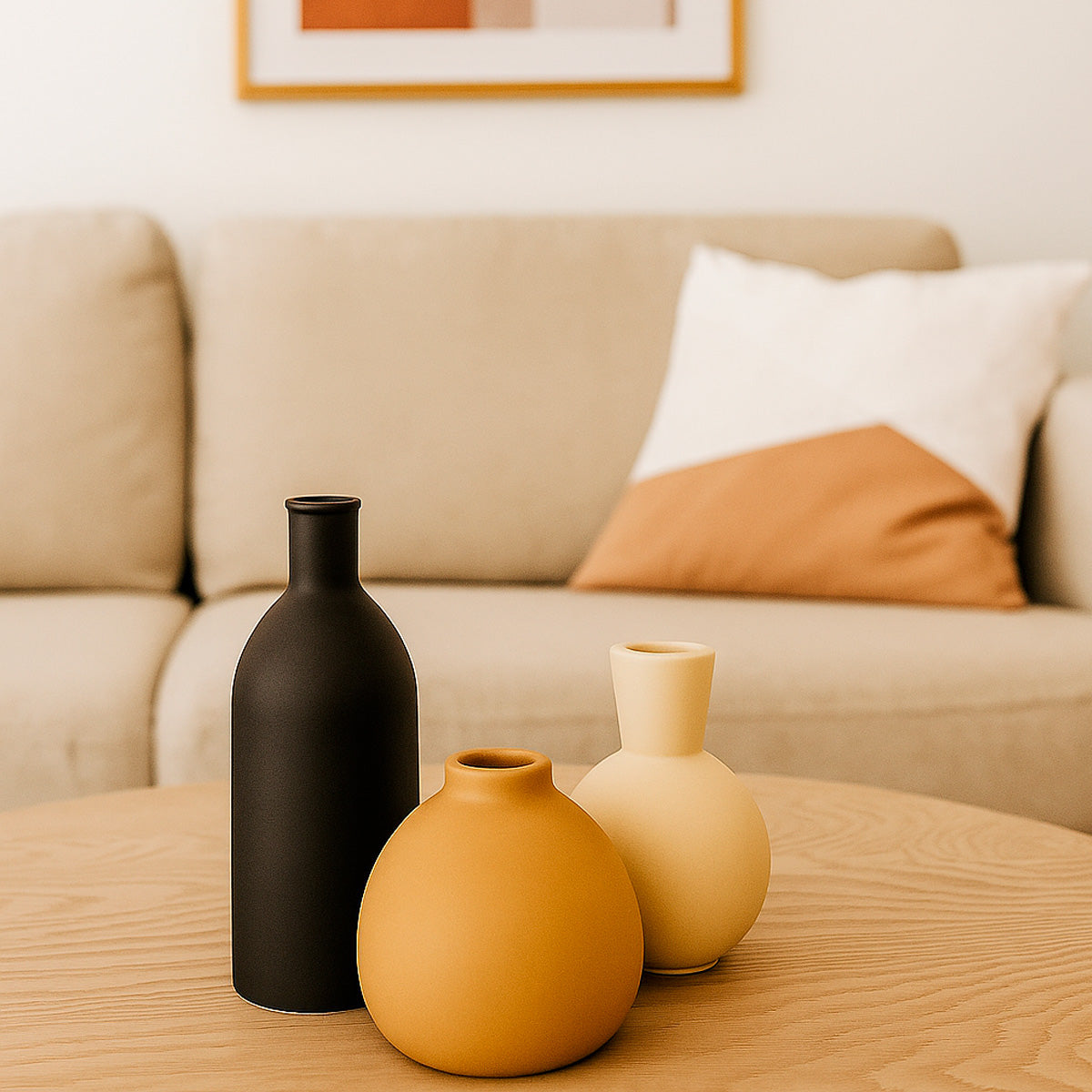 Eleva tus espacios con este elegante set de jarrones de cerámica en tonos neutros.