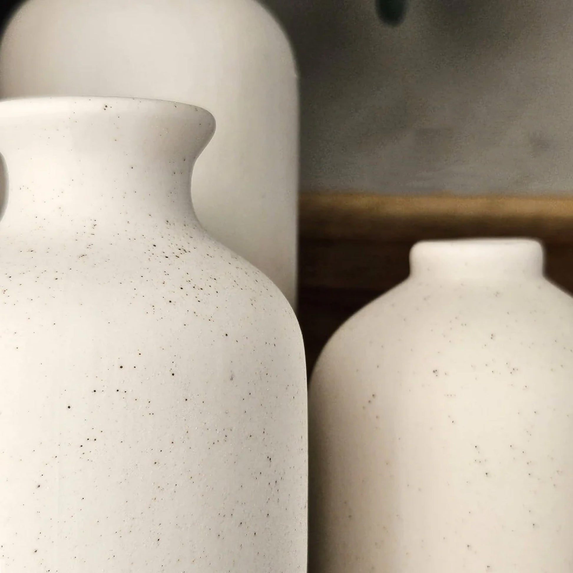 Eleva tus espacios con este elegante set de jarrones de cerámica en tonos neutros.