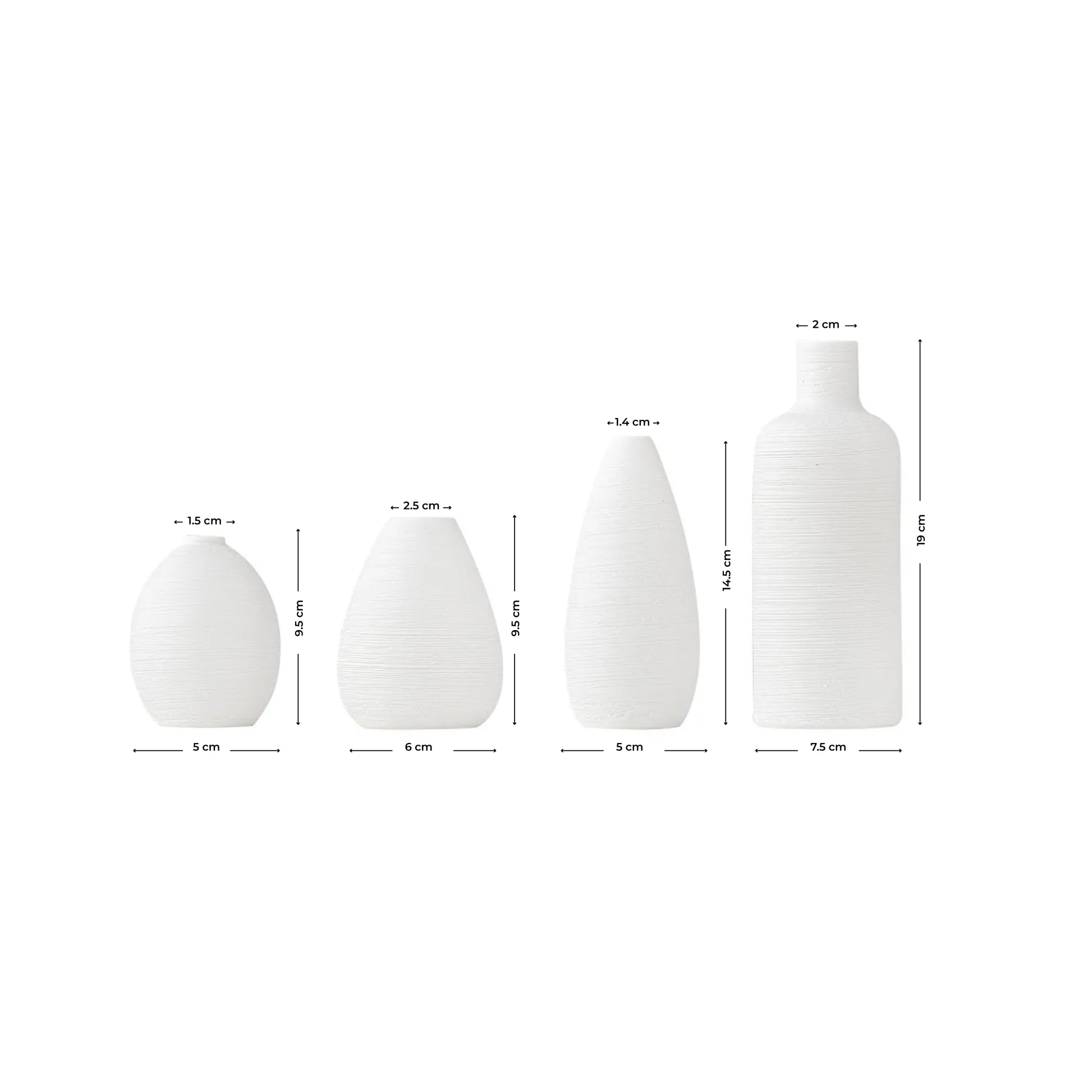 Este set incluye 4 jarrones de diferentes formas y alturas, que puedes combinar juntos o usar por separado para crear composiciones modernas y equilibradas.