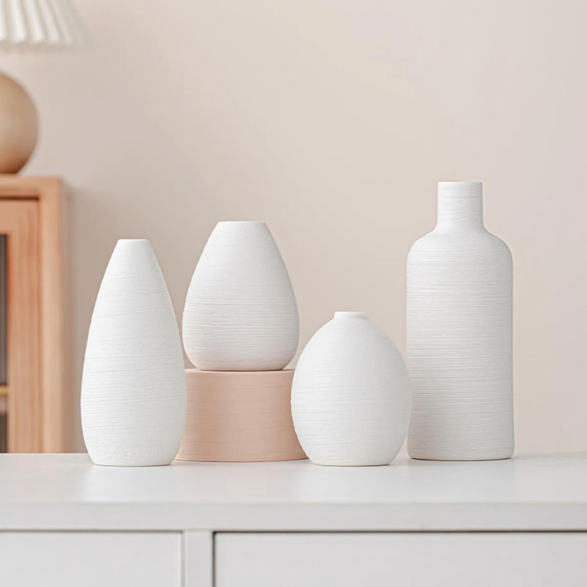 Eleva tus espacios con este elegante set de jarrones de cerámica en tonos neutros.